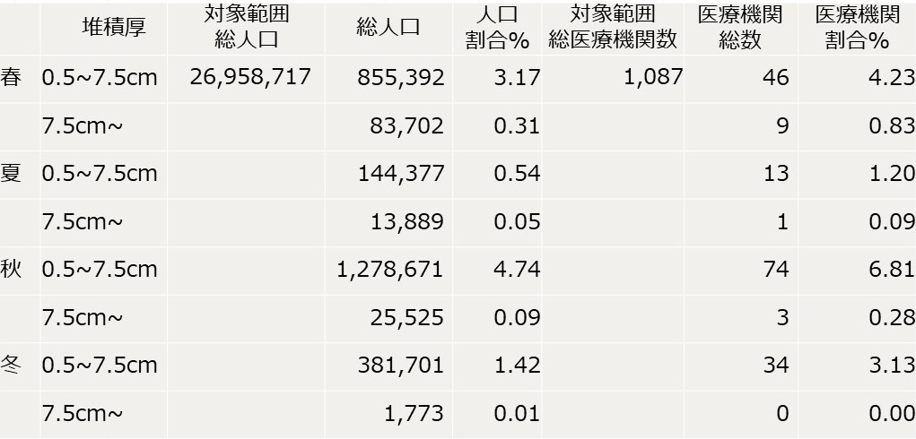 表 被害想定範囲内の人口数及び病院数(浅間山)