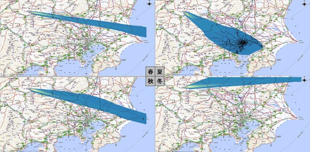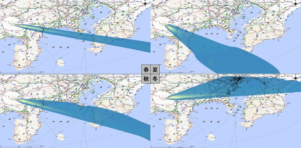 今回のシミュレーションに使用する風向・風速のデータは、季節ごとに以下の条件で決定しました。