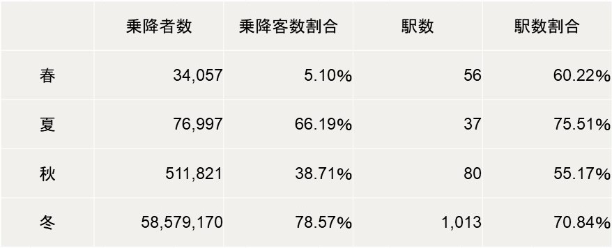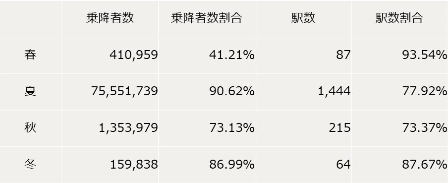 季節の区分は気象庁の予報用語に基づき、以下の基準とする